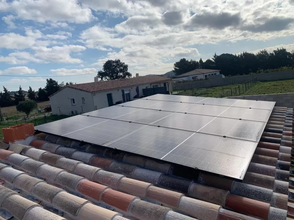 Installation d'une centrale solaire photovoltaïque à Sallèles d'aude, 8 Modules Trinasolar 450Wc Biverre , N-Type , Topcon .